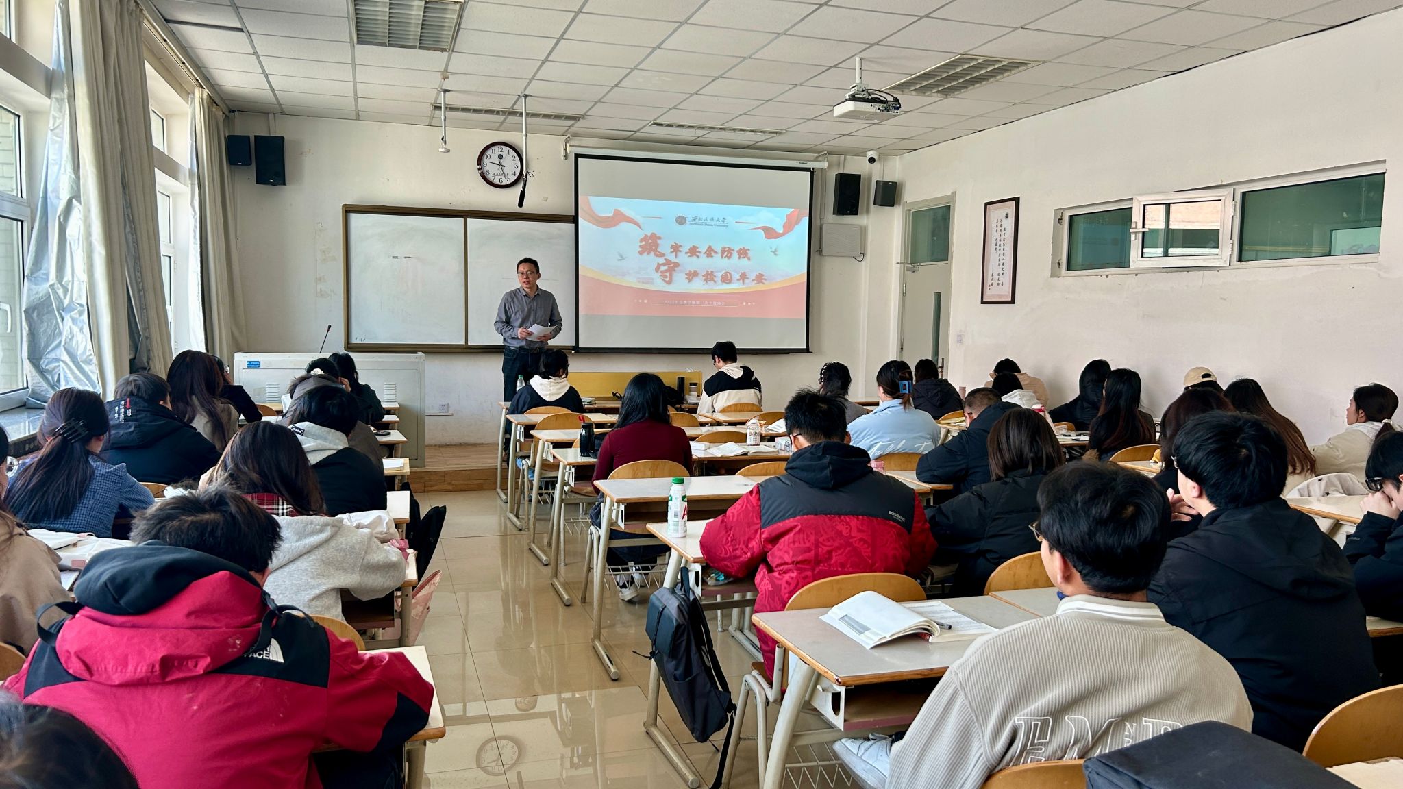 班会上,各班导师强调安全是个人幸福、社会和谐、国家发展的重要基石,引导学生深刻认识安全的重要性。随后,班导师围绕总体国家安全观、人身安全、财产安全、消防安全等内容展开详细讲解,并通过分享身边的典型案例,让同学们直观感受到安全的重要性。