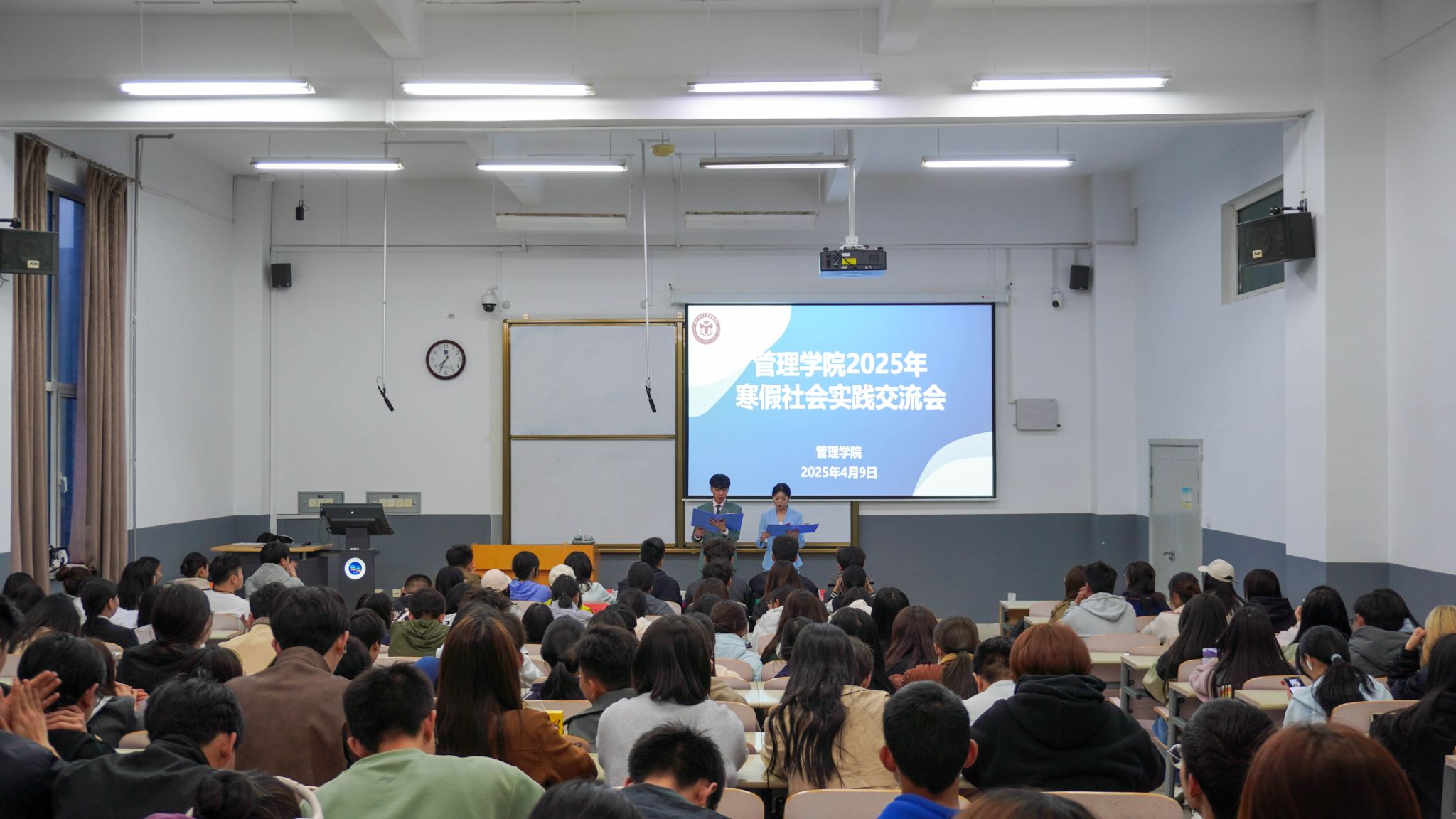 分享会上,来自不同年级、专业、班级的12名学生代表依次上台,分享2025年寒假参加政务实践、社区服务、乡村振兴、文化宣传、公益服务等方面的社会实践经历和收获。通过实践,大家锻炼了意志、增长了才干,用实际行动诠释了新时代青年的责任与担当,展现了管院学子昂扬向上的精神风貌。