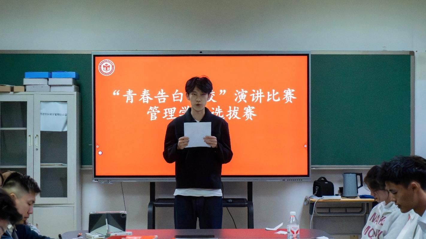 在致善楼301举办“青春告白母校”演讲比赛院内选拔赛,以演讲为载体深情讲述在母校的成长故事。