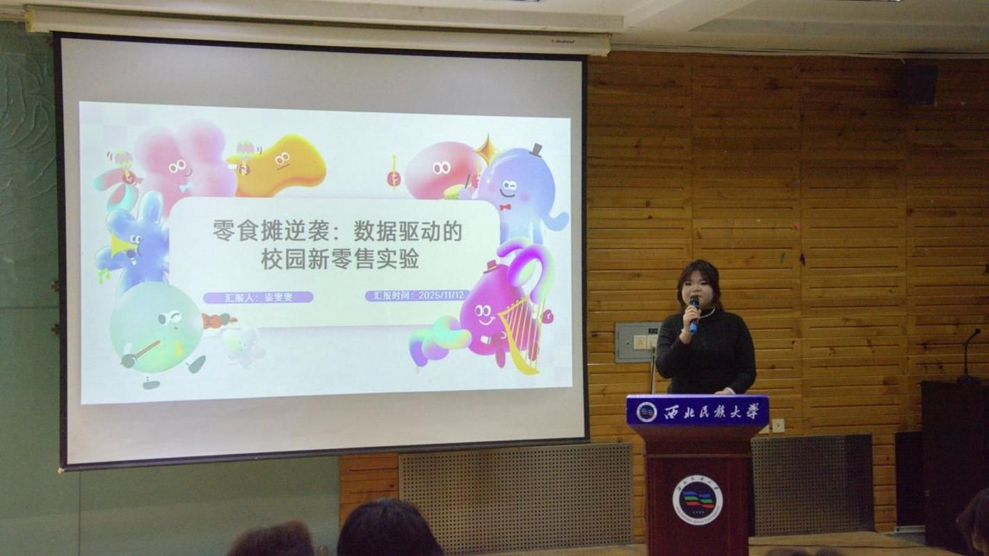 10支队伍通过VLOG和PPT方式分别展示团队在复赛实战销售的亮点与收获,并进行现场答辩。评委老师围绕创新性、商业性、可持续性、团队表现四个维度综合评分。经过激烈比拼,大对特队荣获一等奖,智眠护航队、昭星队获得二等奖,eagle联盟队、海底小纵队、勇往直前队获得三等奖。工商管理系马伊双副教授在点评中充分肯定了各团队发挥不同学科优势,全面展示项目的优势特色。希望大家进一步践行“用数据说话”的理念,以精准数据支撑决策优化,鼓励大家持续培养创新能力、深耕专业领域,在分享中相互学习,在交流中共同提升。