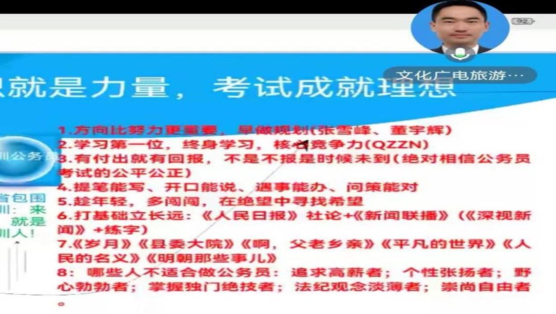 第四期邀请到2006级旅游管理专业蒋超校友,现任广东省深圳市大鹏新区文化广电旅游体育局旅游资源开发科科长。他以“旅游管理专业&公务员考试&深圳特区”为主题进行分享,与参会的同学们讨论旅游管理专业的就业前景,分享了公务员考试的准备策略,以及自己的成长故事和在深圳特区工作、生活的独特体验,激励大家面对困难和挑战时保持积极的态度,不断增强自信心和抗压能力。