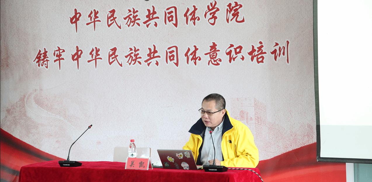 讲座伊始,贺卫光对关凯教授的到来表示欢迎。本次讲座主题围绕“中华民族共同体的历史生成之道”展开。讲座中,关凯教授从历时性角度展开了对中华民族共同体发展进程的论述。从古代中国的“天下观”到现代意义上的“民族——国家”概念,从辛亥革命建立中华民国到社会主义统一多民族国家体制的确立。关教授向在座师生阐述了中华民族共同体是如何在历史发展进程中产生的。讲授过程中结合多学科视角,以中华民族在历史中形成共同体为主线,加以其它相关资料进行论证和分析,旁征博引。同时,关教授结合当今世界形势变化、现代化发展,以生动有趣的方式分析了中国式现代化、中华民族共同体与人类命运共同体之间的关系。