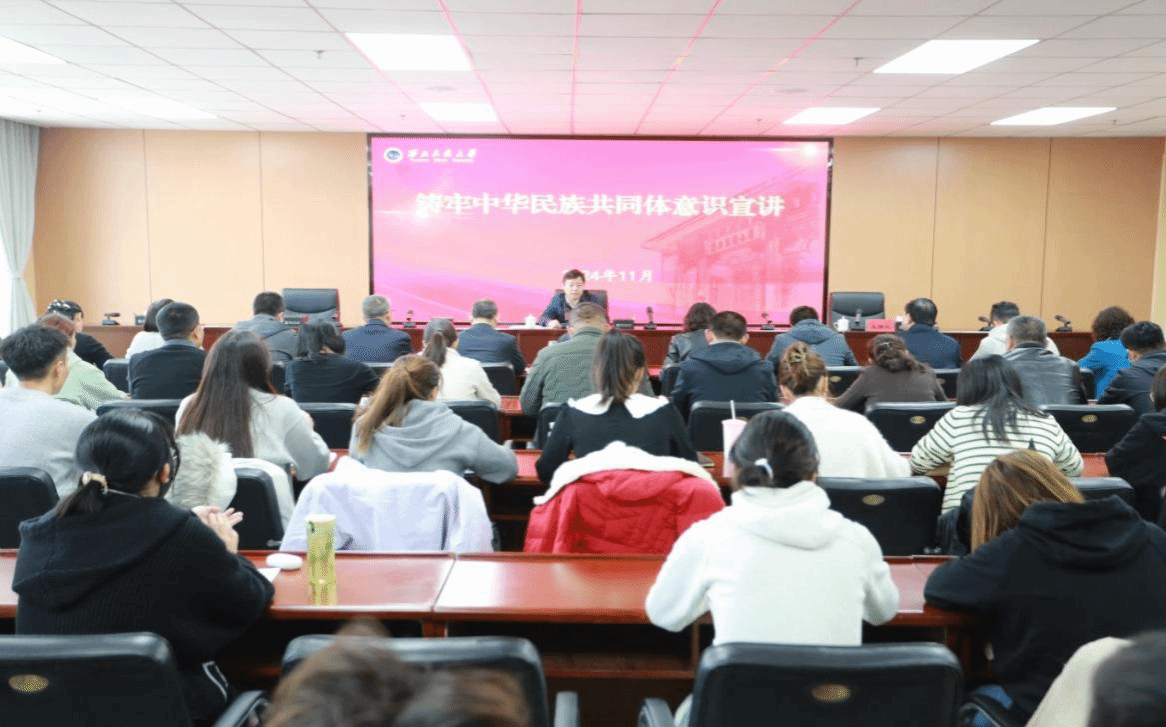 党委书记张俊豪在榆中校区宣讲铸牢中华民族共同体意识,深入学习领会习近平总书记在全国民族团结进步表彰大会上的重要讲话精神。