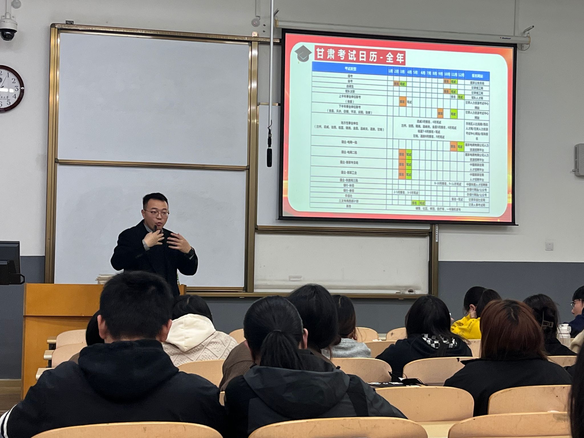 紧接着,甘肃硕博教育创始人、起点考研网特聘讲师付知屹老师为同学们带来了考研专题讲座。付老师结合红黑游戏 专业实际,从院校选择、考研科目、复习规划等方面进行了全方位的讲解。付老师的讲解深入浅出,同学们纷纷表示受益匪浅。