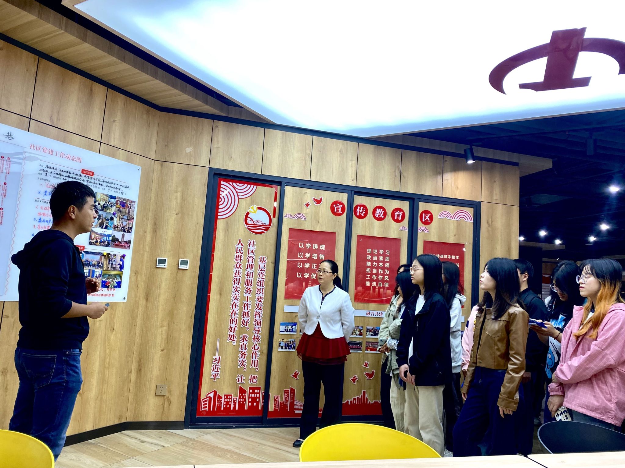 此次活动密切结合课程进展实施,基于专业实践基地,联系社区,发挥校地合作的作用,邀请甘家巷社区书记和居委会主任、副主任为学生们介绍现实中社区的构成,各部分的主要职责,有代表性的社区主题活动等。为学生们创造沉浸式学习氛围。