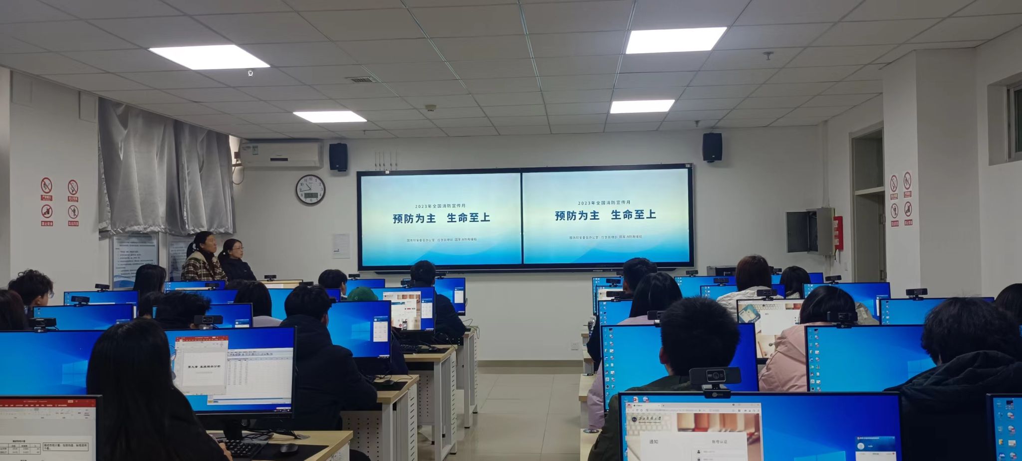 首先结合2023年全国消防宣传月主题“预防为主 生命至上”,对参加本次演练的师生开展消防安全教育,之后对参加演练师生进行演练动员,讲解演练内容及注意事项。演练内容为实验室突发火灾的应急响应和安全疏散;实验室人员、实验课教师、学生一起参加演练。整个演练过程按照实验室制定的火灾事故安全疏散演练方案安全有序开展,参加演练的师生听从指挥,快速反应,达到预期效果。