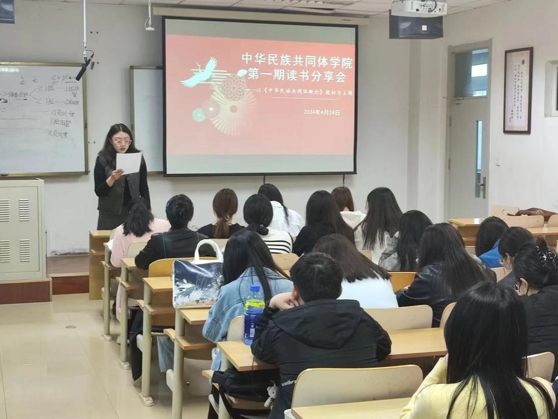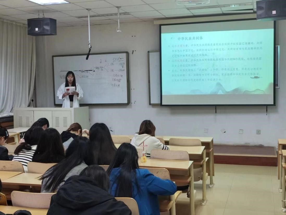 随后,郑念念、翟雨垚、李雅欣、贾紫涵四位同学分享了自己的读书心得,她们结合教材内容,从中华民族的历史渊源、文化传承、民族关系等多个方面进行了深入探讨。郑念念同学从“文明初现与中华民族起源”为主题出发,讲述了中华文化圈的起源和发展过程;翟雨垚同学以封贡互市与茶马贸易为主题,论述了茶马古道在历史长河中既是西南地区民族之间商贸往来的交通要道,又是民族间增进文化交流的重要纽带,对稳定边疆、消弭战争起到了重要作用;李雅欣同学以“华夏一体与中华民族空前繁荣(隋唐五代时期)”为主题,从“共构”“共塑”“共享”三个部分讲述了中华民族在盛唐呈现的空前繁荣的景象;贾紫涵同学从中华民族共同体基础理论出发,讲述了铸牢中华民族共同体意识的重要性以及青年学生如何以实际行动贡献自己的青春力量。