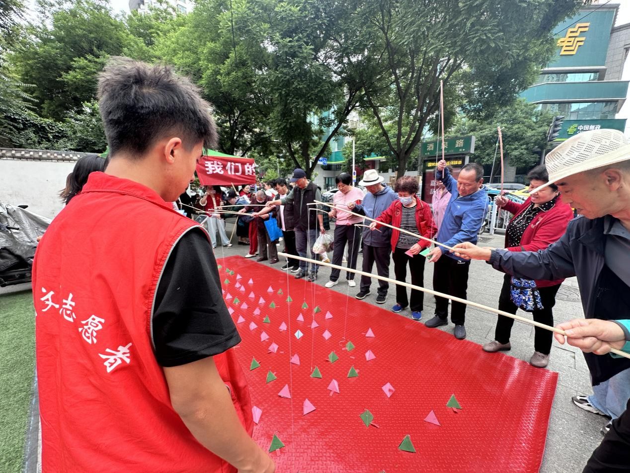 端午节期间,各社区洋溢着浓厚的节日氛围,同学们积极投身节庆活动筹备。甘家巷社区 “钓粽趣无穷 共建暖民心” 活动中,大家精心布置场地、设计游戏环节,让居民在趣味互动中感受传统文化魅力;西北新村社区的香包制作活动中,同学们与居民共同缝制香囊,在一针一线中传递温情;红黑游戏