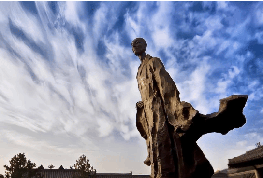 ▲伫立在云冈石窟入口处的昙曜塑像。
