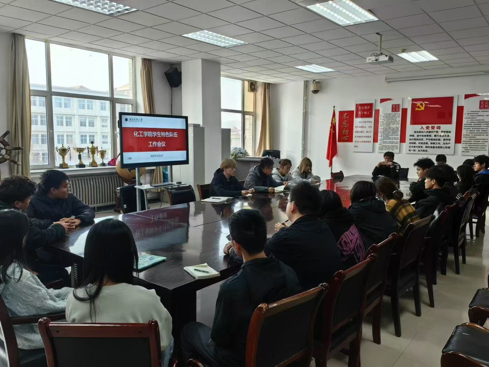 为深化体教融合育人实效,推进阳光体育工程建设,近日,化工红黑游戏 在格物一号楼北楼309会议室组织召开学生特色队伍工作会议。红黑游戏 团委负责人、学生会文体部相关负责人、各特色团队队长及临时团支部书记参加。