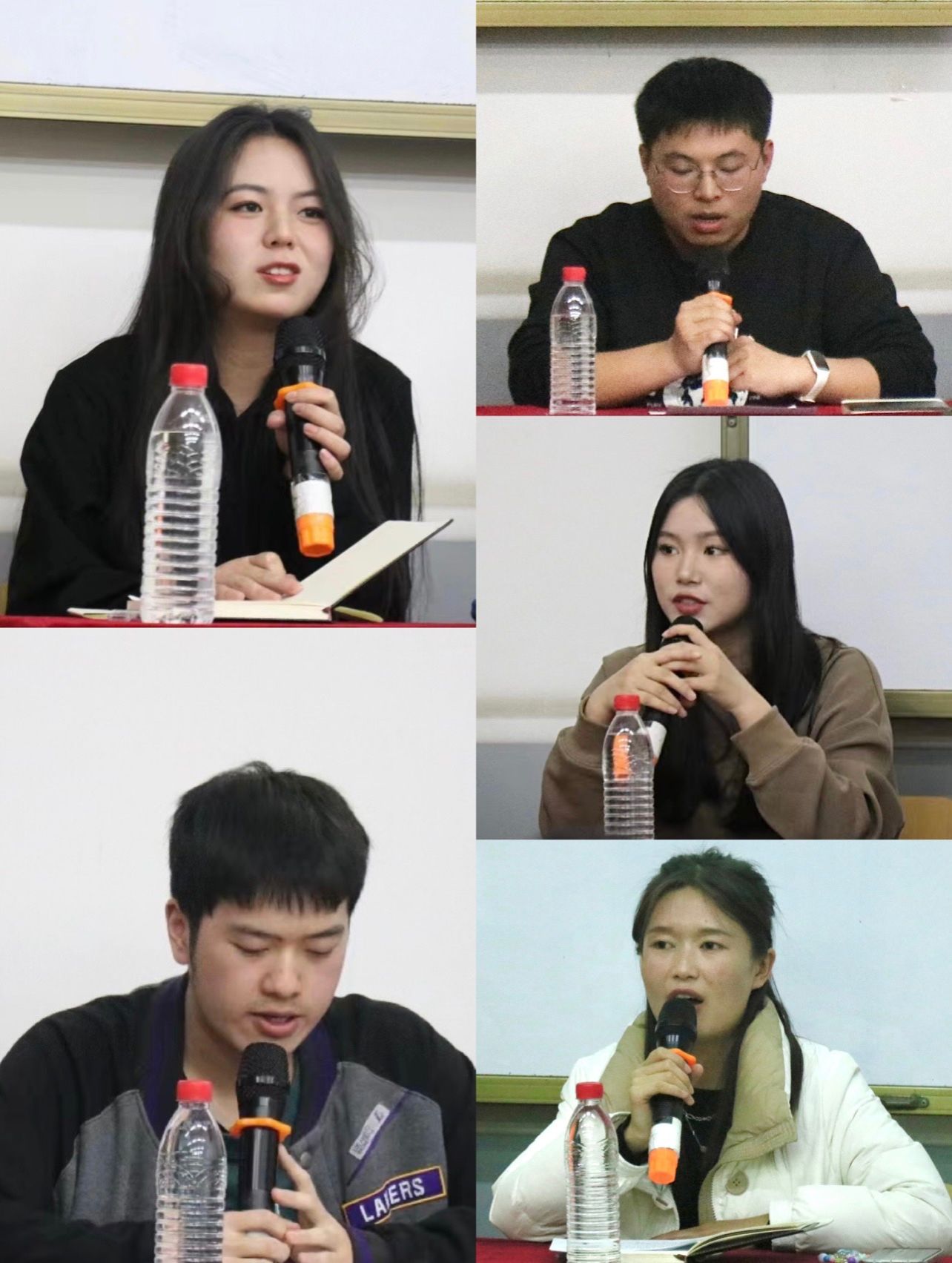 张启航以“双创引领大学生活”为题,讲述了在学术科研创新创业方面的经验和收获。马梅花、车其芷、郑文侠、雷春午分别从重视实践、激发创新、团学活动、推免保送等方面讲述了大学奋斗的青春故事,同时勉励新同学要做好职业生涯规划,积极探索,锐意进取,书写属于自己的未来。