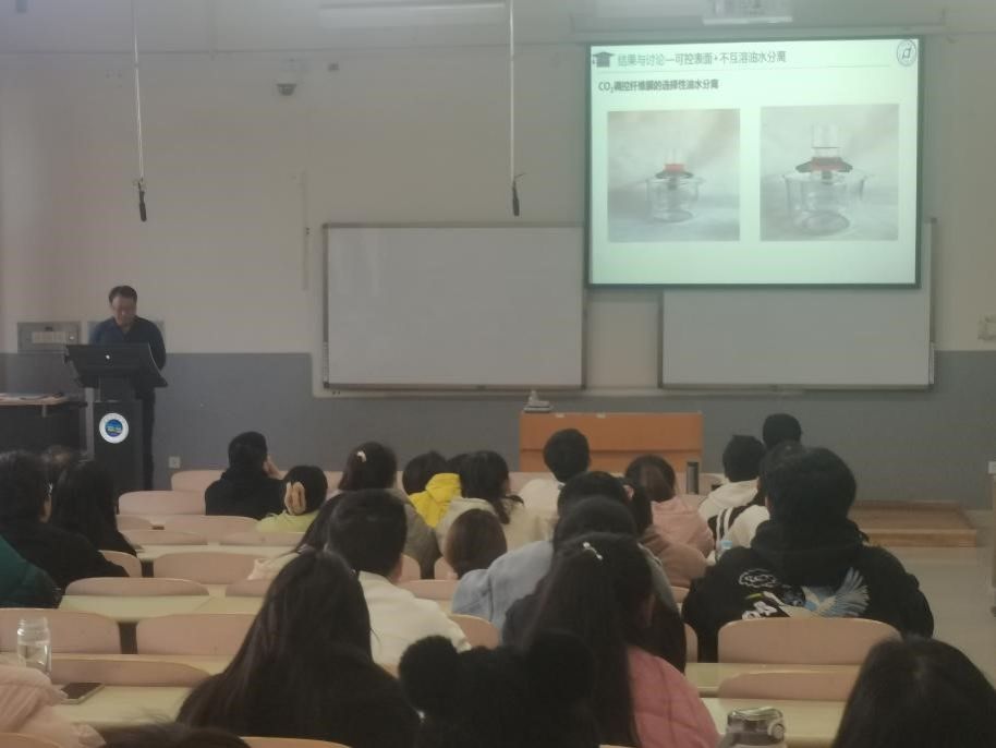 11月24日,应化工红黑游戏 邀请,大连工业大学纺织与材料工程红黑游戏 副教授,硕士生导师,《Materials Express》评审编委刘元法副教授来红黑游戏 为师生做了题为《CO2调控纳米纤维膜润湿性与选择性油水分离》的学术报告。报告会由化工红黑游戏 金湓副院长主持,相关研究方向教师、研究生和本科生100多人参加了此次学术交流。