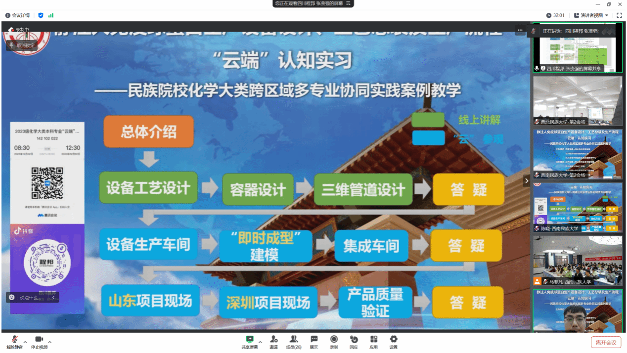 本次实习包含了两个重要部分:一是云端认识实习岗前安全培训,二是静注人免疫球蛋白工艺设备设计及制造流程的云端认识实习。实习采用线上云播的形式,以腾讯会议为主屏直播讲解,抖音为副屏直播互动,实现了企业与学生的面对面交流,让学生们能够足不出户地参与到实习中来,更加深入地了解和掌握专业知识。