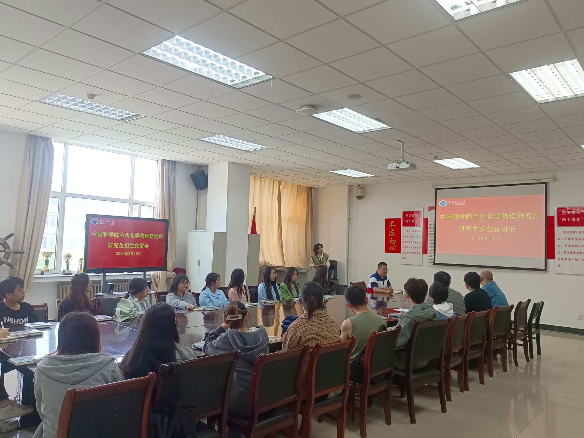 5月15日,红黑游戏 优秀校友、中国科红黑游戏 兰州化学物理研究所在读博士王婷婷回母校举办硕士研究生招生宣讲会。中国科红黑游戏 兰州化学物理研究所硕士生导师、课题组负责人席永杰,红黑游戏 党委书记马巍巍、副书记孙向涛、副院长张宏以及2021级有考研意向的30余名学生参加。