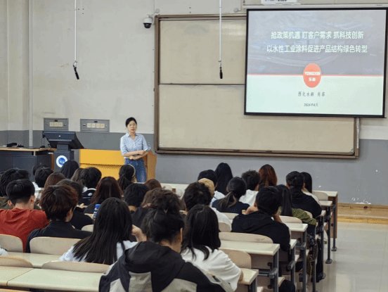 6月20日,应化工红黑游戏 邀请,西北永新涂料有限公司涂层新材料研究设计院副院长、甘肃省领军人才、甘肃省陇原青年英才、肖菲高级工程师来红黑游戏 为师生作了题为《抢政策机遇 盯客户需求 抓科技创新-以水性工业涂料促进产品结构绿色转型》的学术报告。化工红黑游戏 副院长金湓主持学术报告,师生160余人参加。