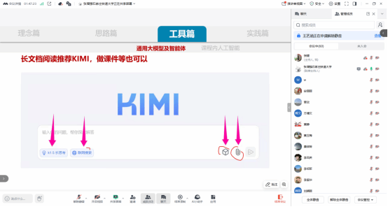 在讲座结束后参训教师围绕培训内容展开交流,结合自身教学经验探讨AI工具的应用痛点与解决方案。有教师表示:“培训既提供了前沿工具的操作指南,也引导我们反思技术时代的教育本质,对课程创新有很强的指导意义。”