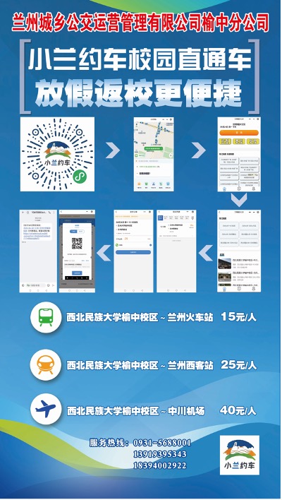 可通过“小兰约车”小程序提前网上订车购票或实时扫码购票乘车。校园直达专车,无需换乘,一站式直达兰州火车站、兰州西客站或中川机场。