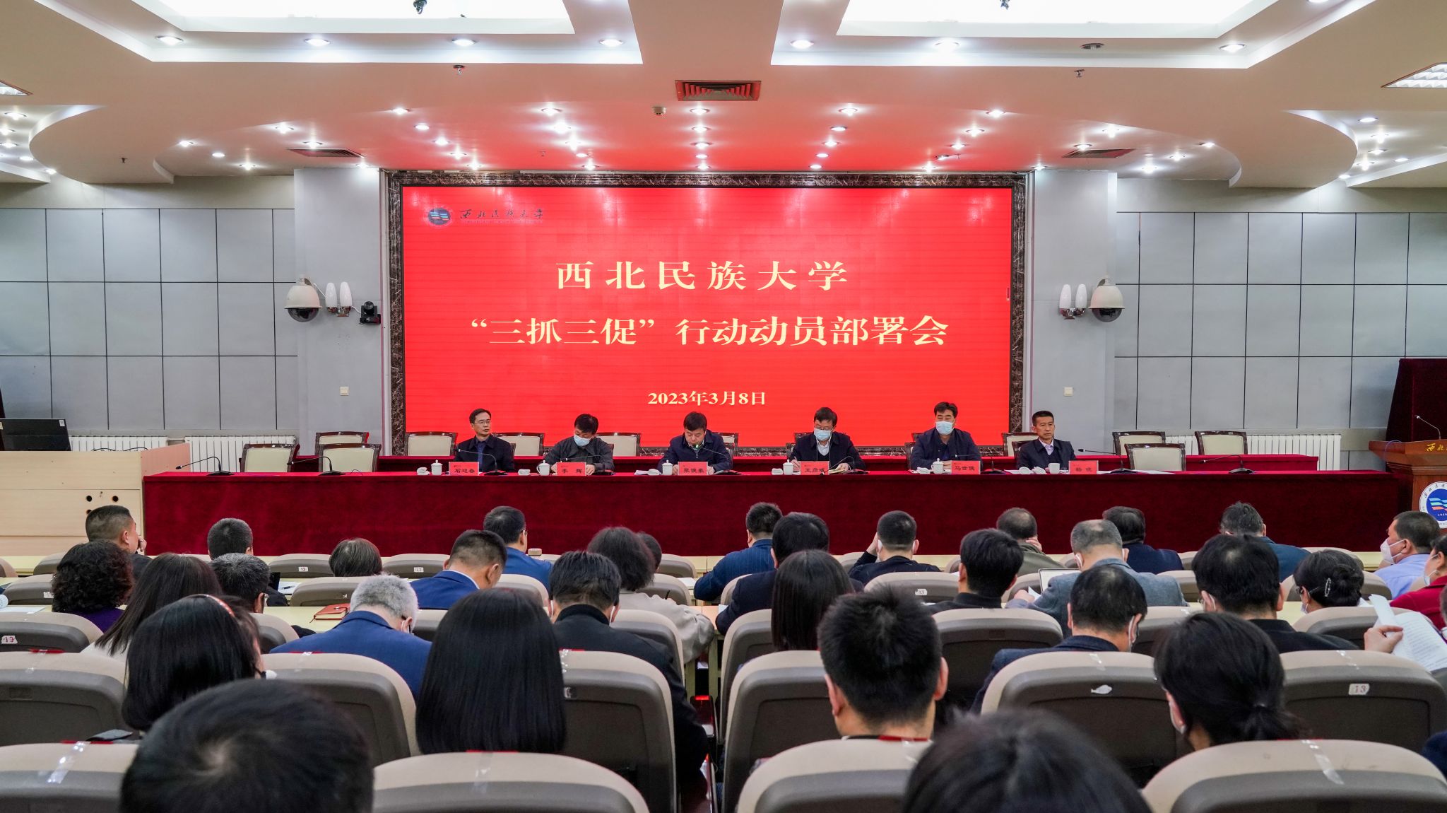 在西北新村校区文津楼学术报告厅召开“三抓三促”行动动员部署会议。党委书记张俊豪出席会议并讲话,校领导王彦斌、李辉、马世俊、石迎春出席会议。党委常委、纪委书记杨晓主持会议。