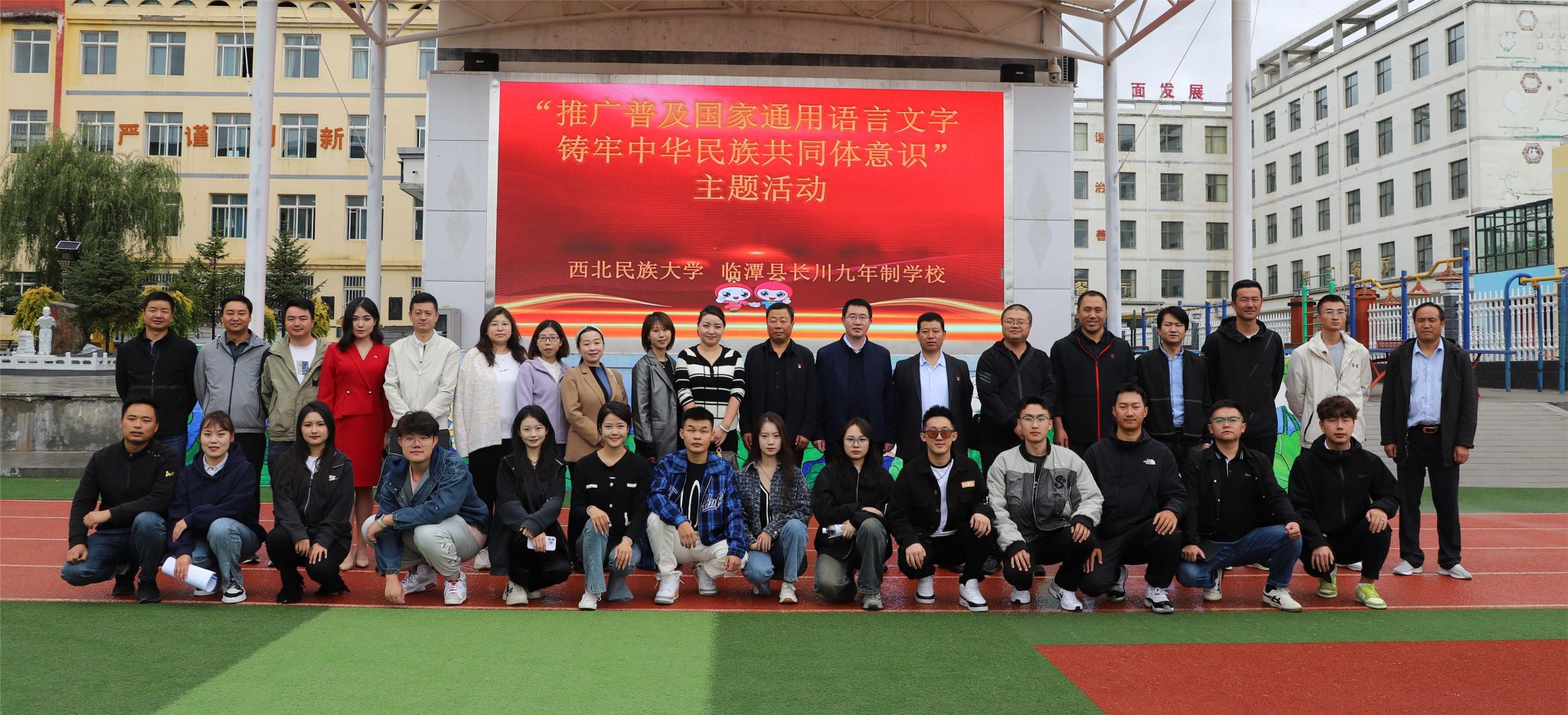 组织国家普通话测试员、优秀师生代表一行22人赴甘南藏族自治州临潭县开展“推广普及国家通用语言文字,铸牢中华民族共同体意识”主题活动,当地共2000余名师生参与,取得了良好的成效。