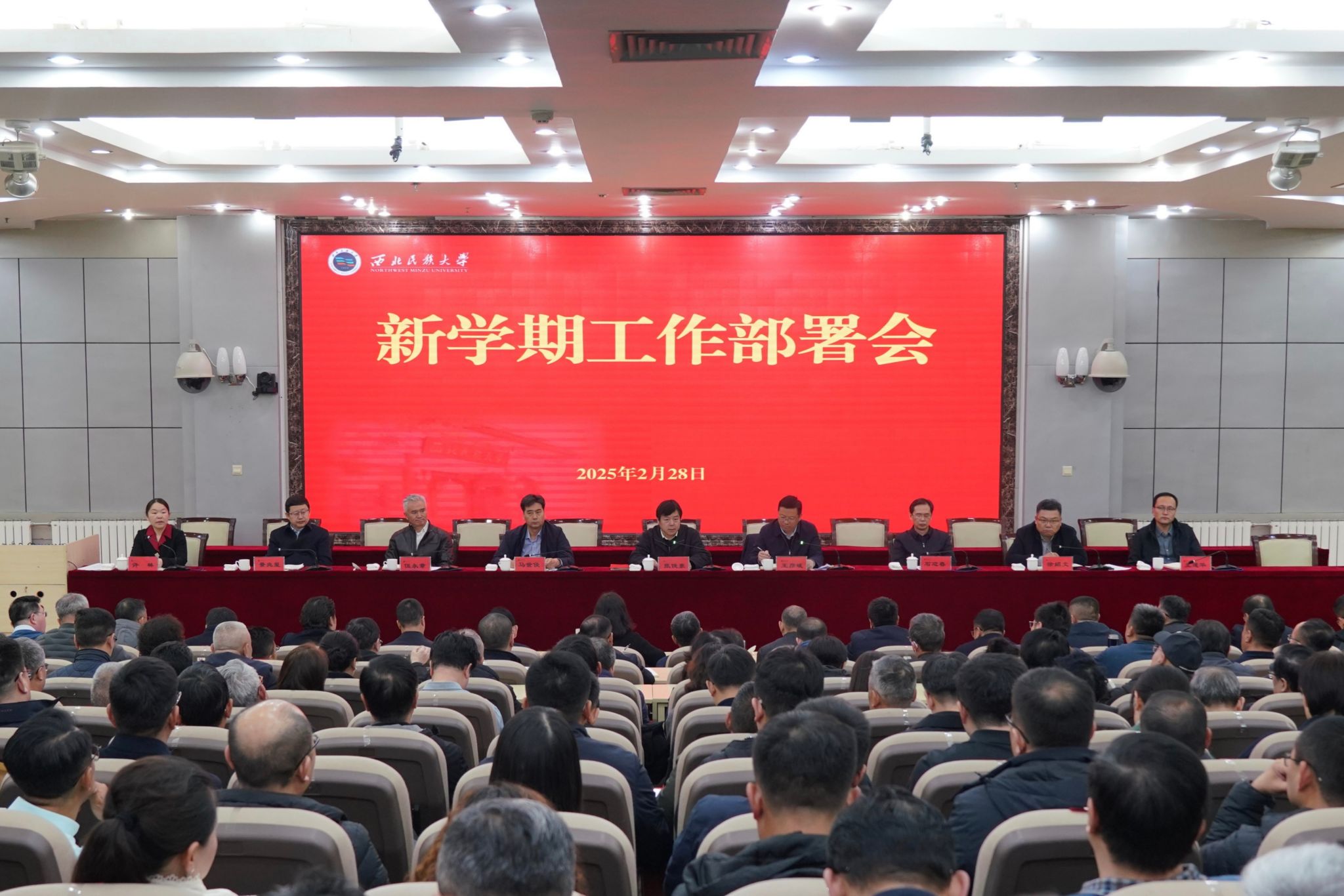 在西北新村校区文津楼二楼学术报告厅召开新学期工作部署会,安排部署2025年重点工作,校党委书记张俊豪讲话,校党委副书记、校长王彦斌主持会议,全体校领导、全校副处级以上干部参加会议。