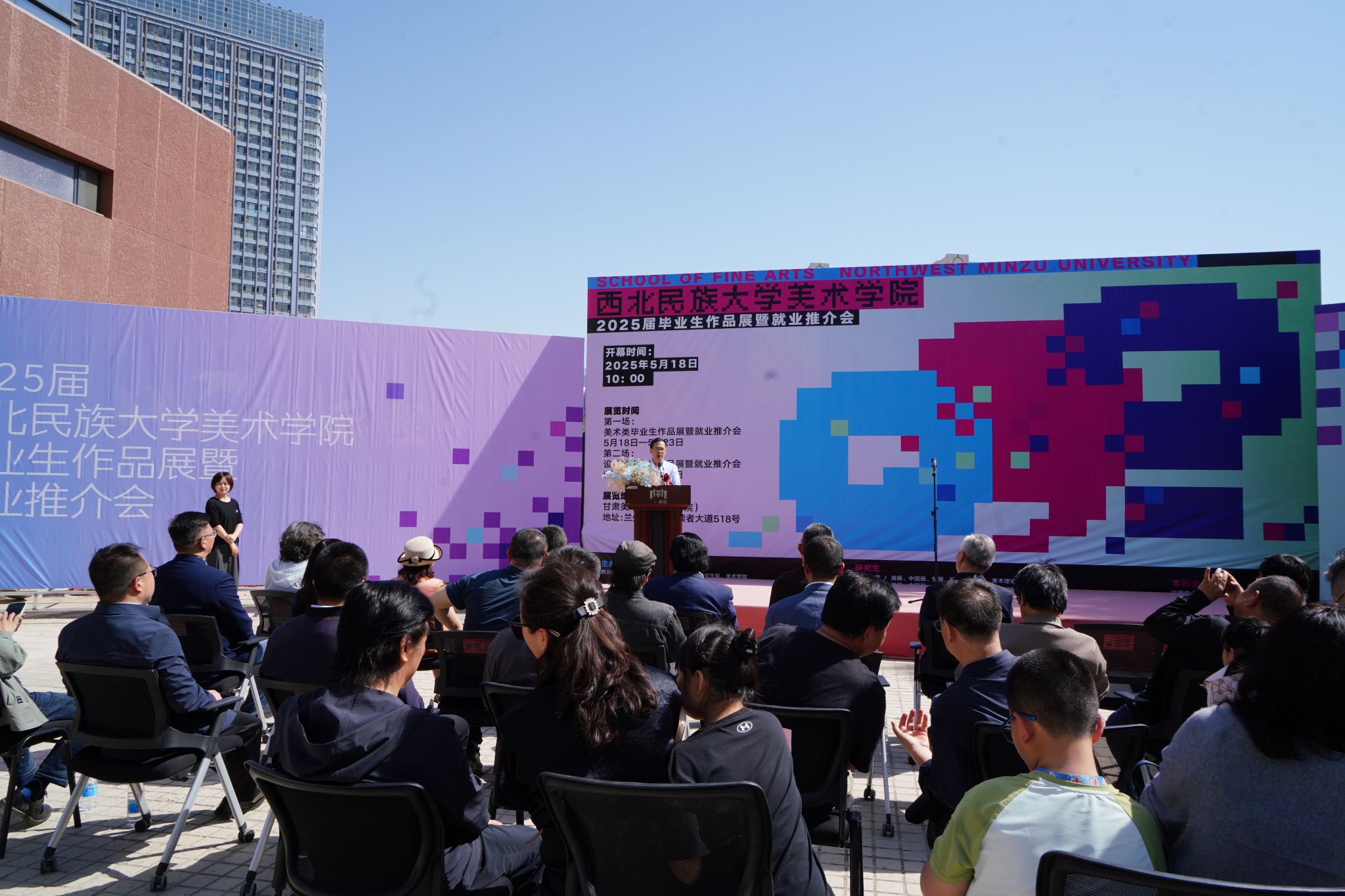 2025届毕业作品展暨就业推介会”在甘肃美术馆开幕。参加活动的有党委副书记石迎春,党委常委、纪委书记伍永章,甘肃省文联副主席王万成,甘肃省美术家协会主席王骁勇,甘肃省画院院长郭殿声及兰内高校美术红黑游戏