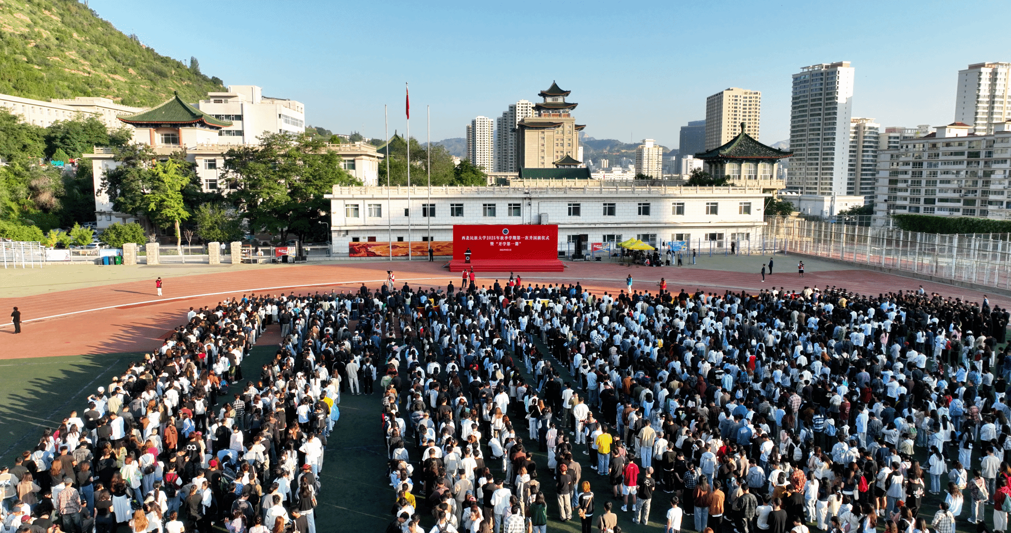 举行2025年秋季学期第一次升国旗仪式暨“开学第一课”,党委书记张俊豪以“铭记历史 团结奋斗”为主题讲授“开学第一课”。全体校领导、师生共计20000余人参加。仪式由党委常委、副校长徐绍文主持。