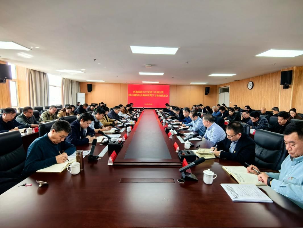 召开党建工作例会暨树立和践行正确政绩观学习教育推进会,传达学习中央专班和国家民委系统学习教育工作专班相关文件精神,对推动学习教育走深走实作出部署。校党委副书记、副校长,学习教育工作专班组长徐绍文主持会议并讲话。各二级单位党组织书记、学习教育工作专班成员参加会议。
