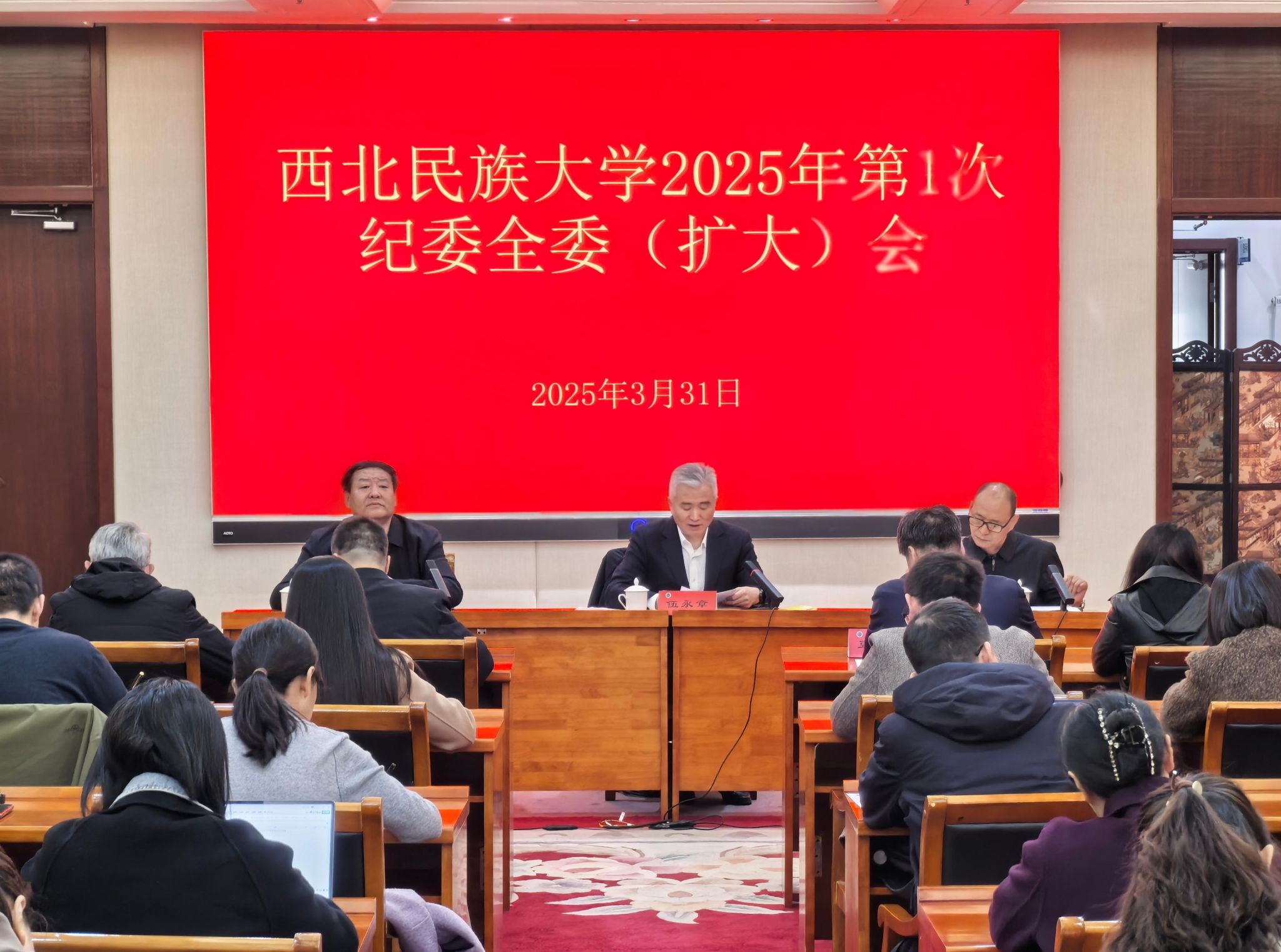 3月31日,西北民���大学纪委召开2025年纪委全委(扩大)会议,学校党委常委、纪委书记伍永章主持会议。