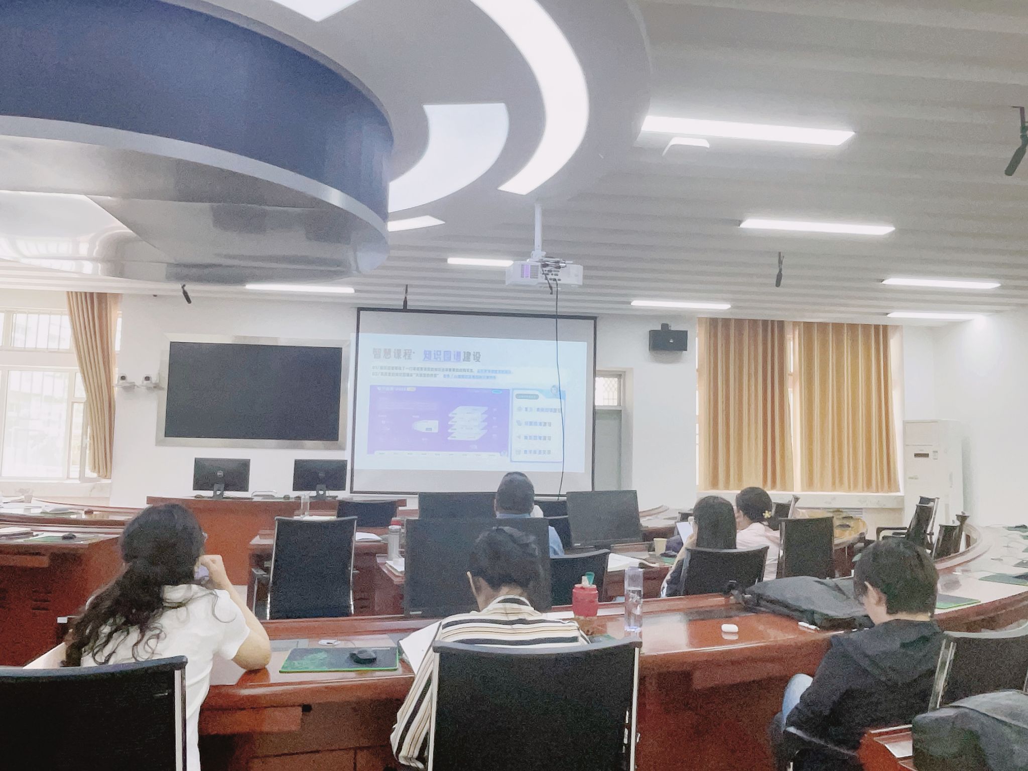 在致善楼 102 教室成功举办了“知识图谱 + 人工智能”赋能教育建设交流研讨会。本次会议邀请智慧树工程师马志强担任主讲嘉宾,全体教师参与研讨。