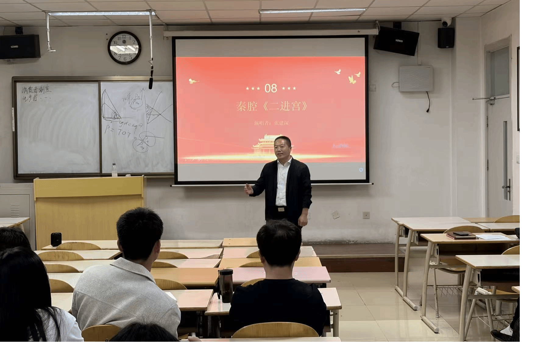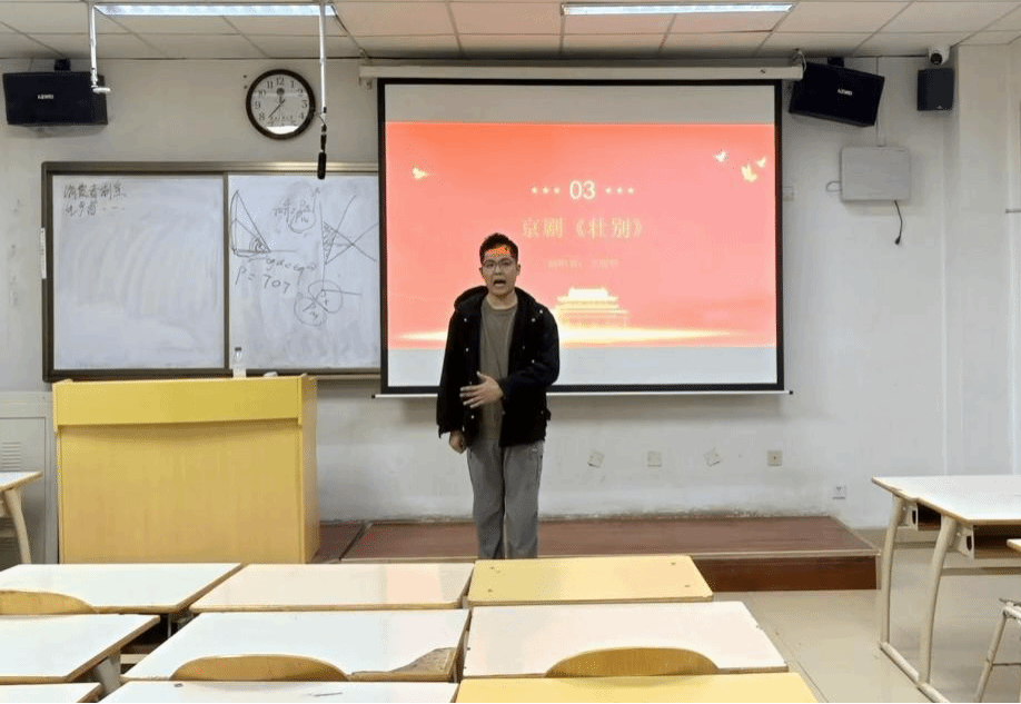 传统戏曲环节更添韵味。李博然以一曲京剧《壮别》惊艳亮相,醇厚的唱腔将戏曲文化的魅力与报国精神的内涵巧妙融合,展现出金融学子对传统文化的传承与创新。支部书记张建深老师演唱了秦腔《二进宫》,高亢激昂的唱腔,展现了传统戏曲的独特魅力,既表达了角色的忠义与担当,更传递出共产党人坚守初心、担当使命的精神力量,赢得师生们阵阵喝彩。
