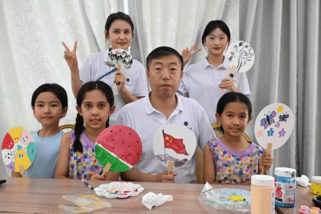 7月24日,在胜利社区“红领巾小课堂”,团队成员与小学生共唱红歌、制作漆扇,在互动中传递民族团结理念,播撒“籽籽相拥”的种子。