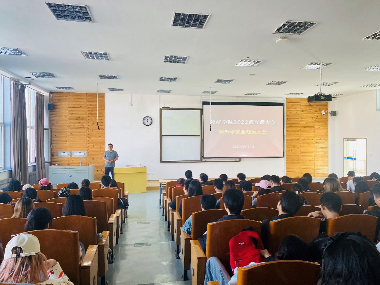 召开大四年级学生升学就业主题大会。院长王超教授、副院长马子量教授、辅导员马永腾和全体2022级学生参加会议。