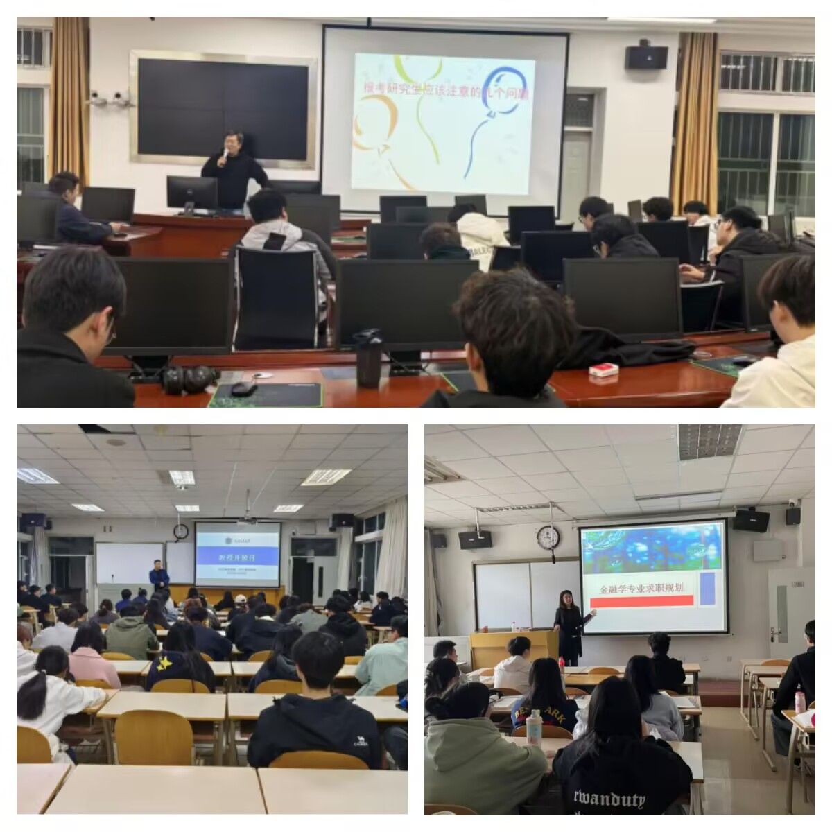 在求职与考研实操指导方面,刘笠老师为同学们解析“金融学专业求职规划”,从深造到就业,构建起“学历 + 证书 + 实践”的竞争力模型。他的讲解让同学们清晰地认识到自身的优势与不足,为未来的职业规划提供了明确的方向。