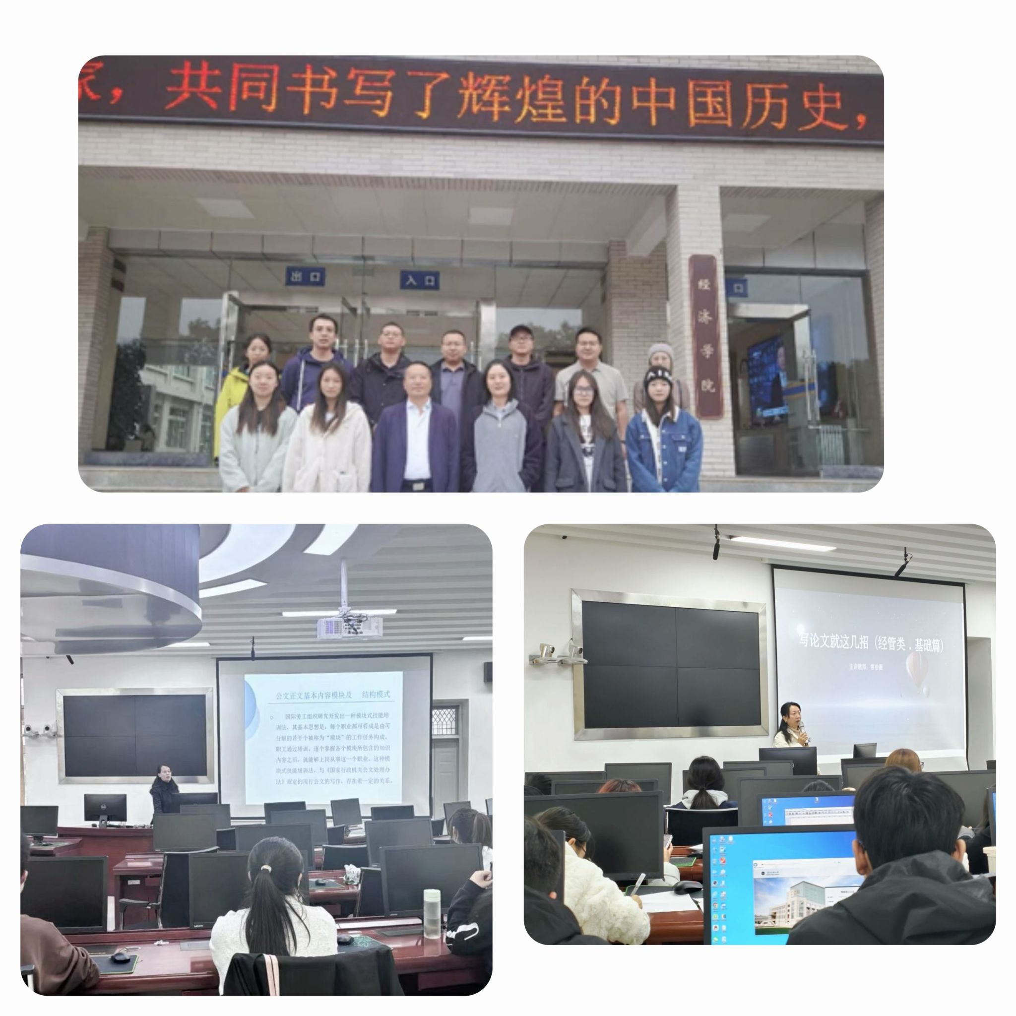 教学办公室组织8位具有高级职称教师充分发挥专业特长,围绕学生成长需求开展了丰富多彩的主题分享。曹颖轶系统讲解论文写作全流程,通过典型案例剖析常见误区,强化学生的学术规范意识;王超与张建深、郭蕙兰联合举办校友座谈会,邀请业界校友分享保险领域实战经验,为学生的职业规划提供专业指导;胡玉霞聚焦职场应用文写作,以“理论+案例”相结合的方式,助力学生实现从校园到职场的顺利衔接。