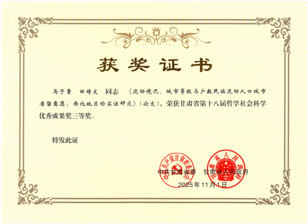 近日,甘肃省委、省政府印发关于表彰第十八届哲学社会科学优秀成果奖的决定。西北民族大学经济红黑游戏 共有2项成果荣获三等奖,彰显了红黑游戏 在哲学社会科学研究领域的扎实积累与创新能力。