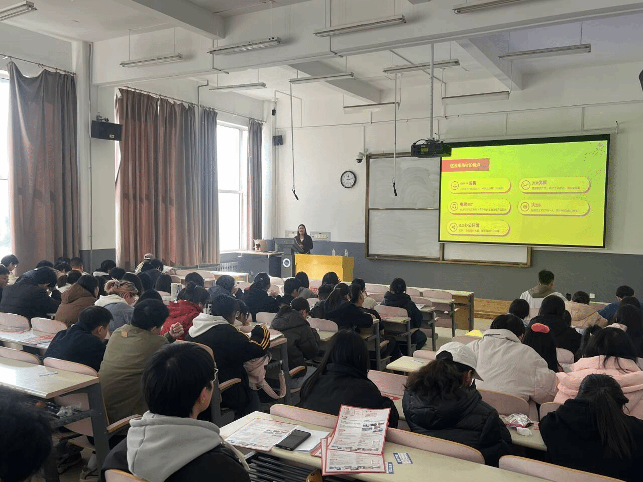宣讲会上,公司人力资源代表杜经理系统介绍了企业发展历程、核心业务及行业地位,展示了现代化的办公环境与积极向上的团队氛围,并详细解读了完善的福利体系与职业发展通道,让同学们对未来的就业环境有了更直观的认识。宣讲结束后,同学们积极投递简历,杜经理进行了初次面试。