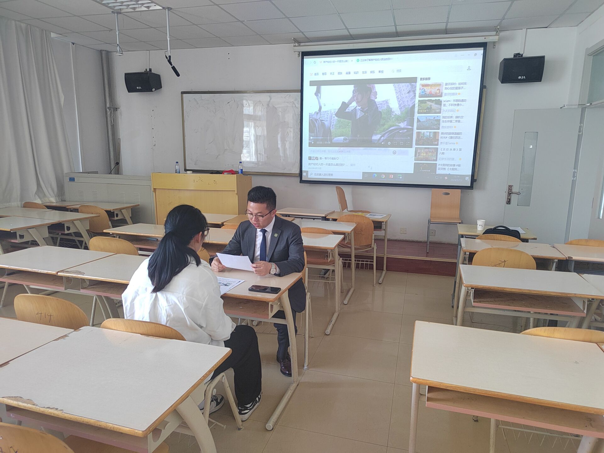 北京链家成立于2001年,是以数据驱动的全价值链房产服务平台,是一家美股、港股双上市的公司,提供二手房、新房、租房、旅居房产、海外房产等房产交易服务。在宣讲会上北京链家有限公司负责人陈海涛先通过一个小视频展现了置业顾问岗位的工作内容,接下来介绍了公司的岗位需求、招聘岗位的任职条件和简历投递方式等。最后陈海涛回答了同学们提出的各方面问题,并对投递简历的同学进行了初试。