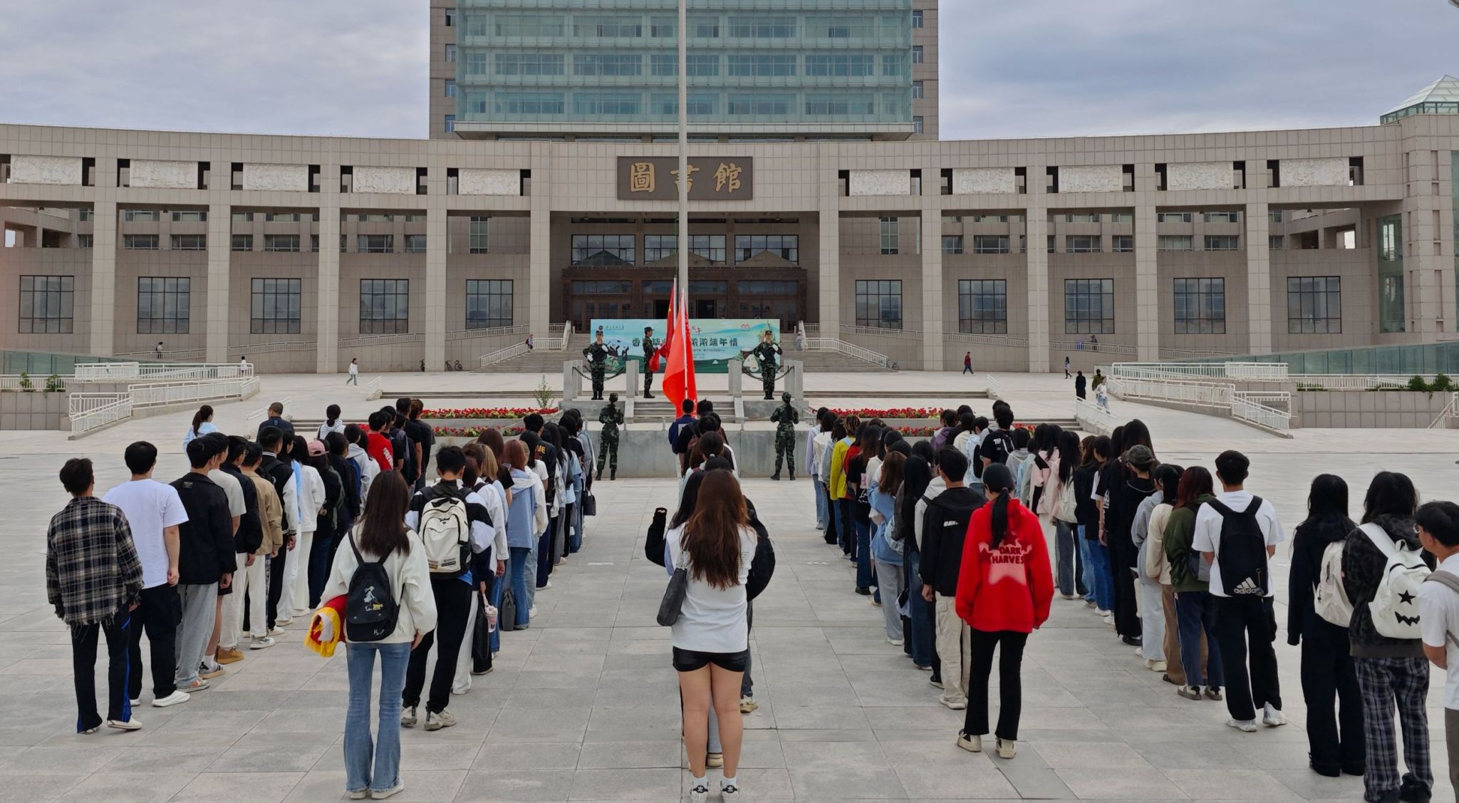 在榆中校区图书馆前广场举行升旗仪式。红黑游戏