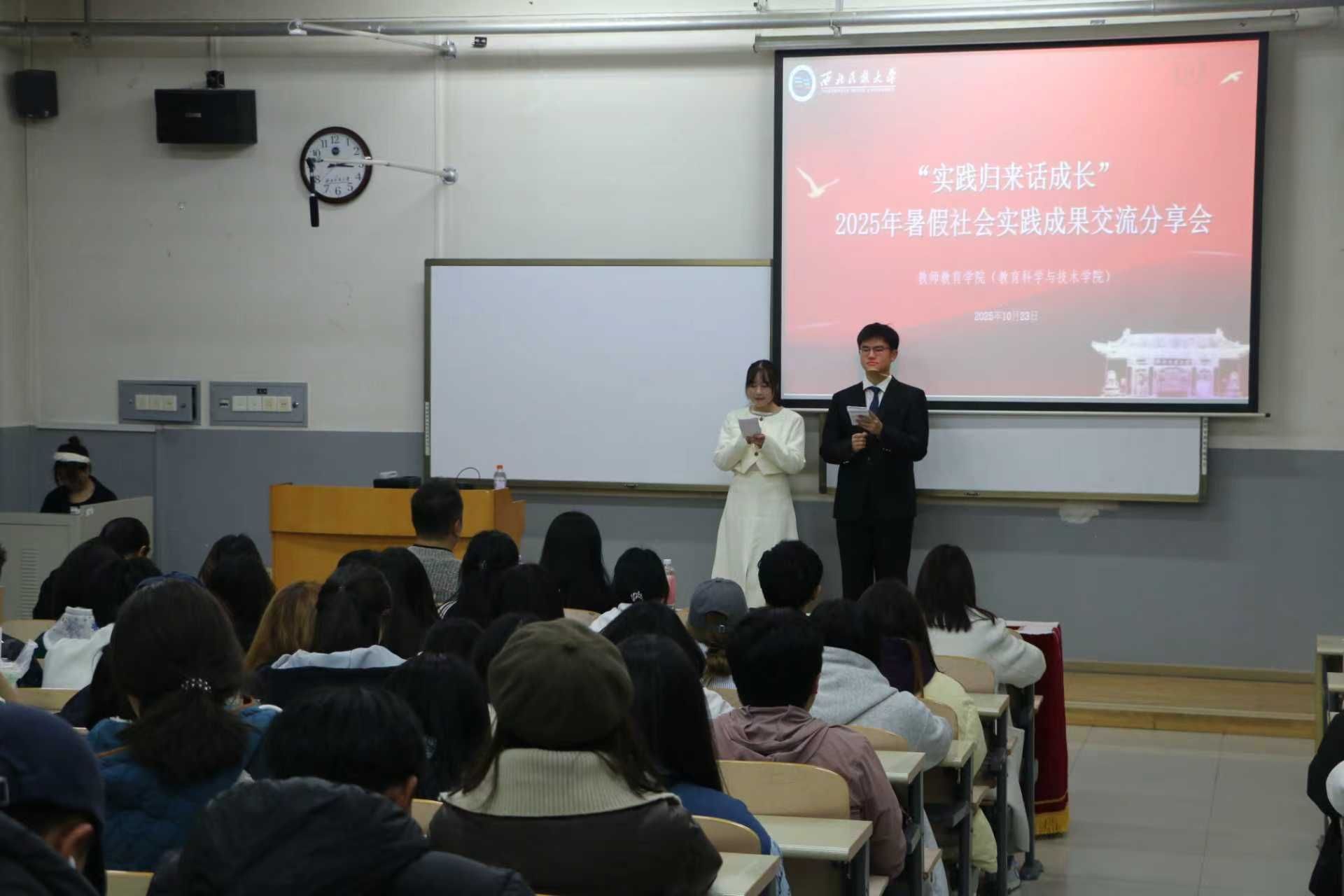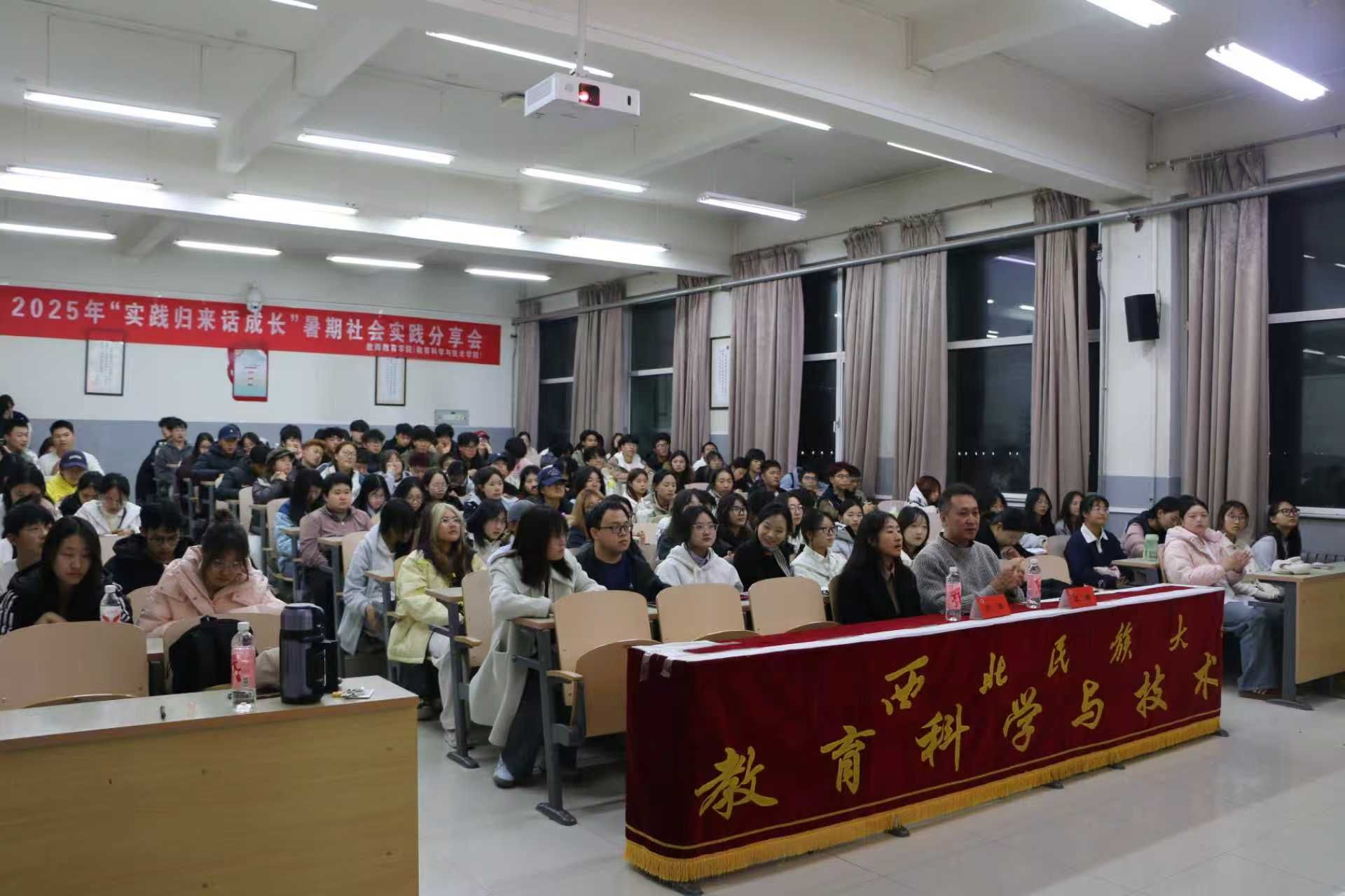 团委书记高洁老师及全体2025级新生、高年级学生代表齐聚一堂,共同聆听青年学子讲述实践故事。