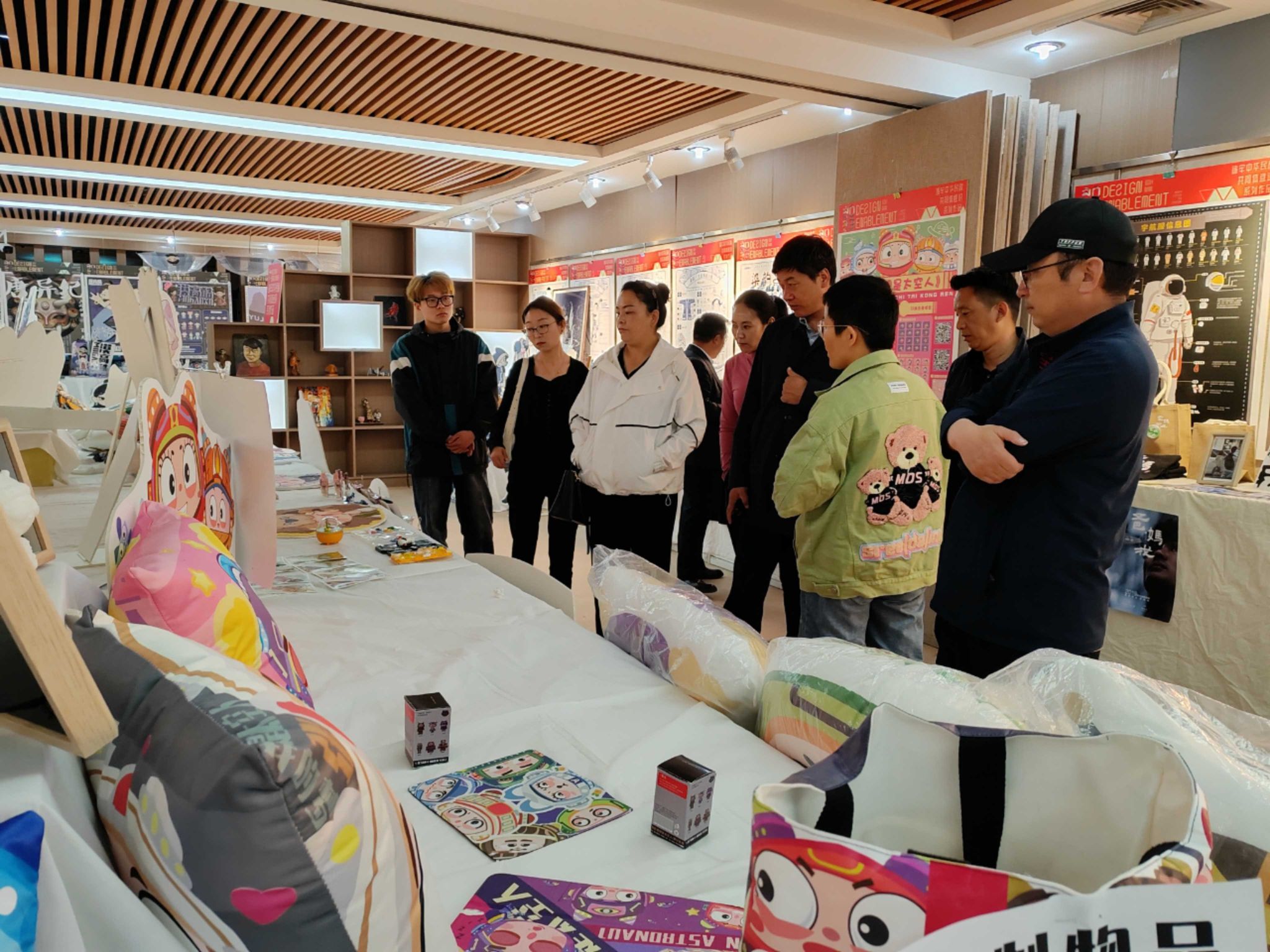 在参观毕业生作品展时,馆长们对学生创作的IP形象、文创衍生品及虚拟仿真作品产生了浓厚的兴趣,对学生创作给予了高度的称赞。