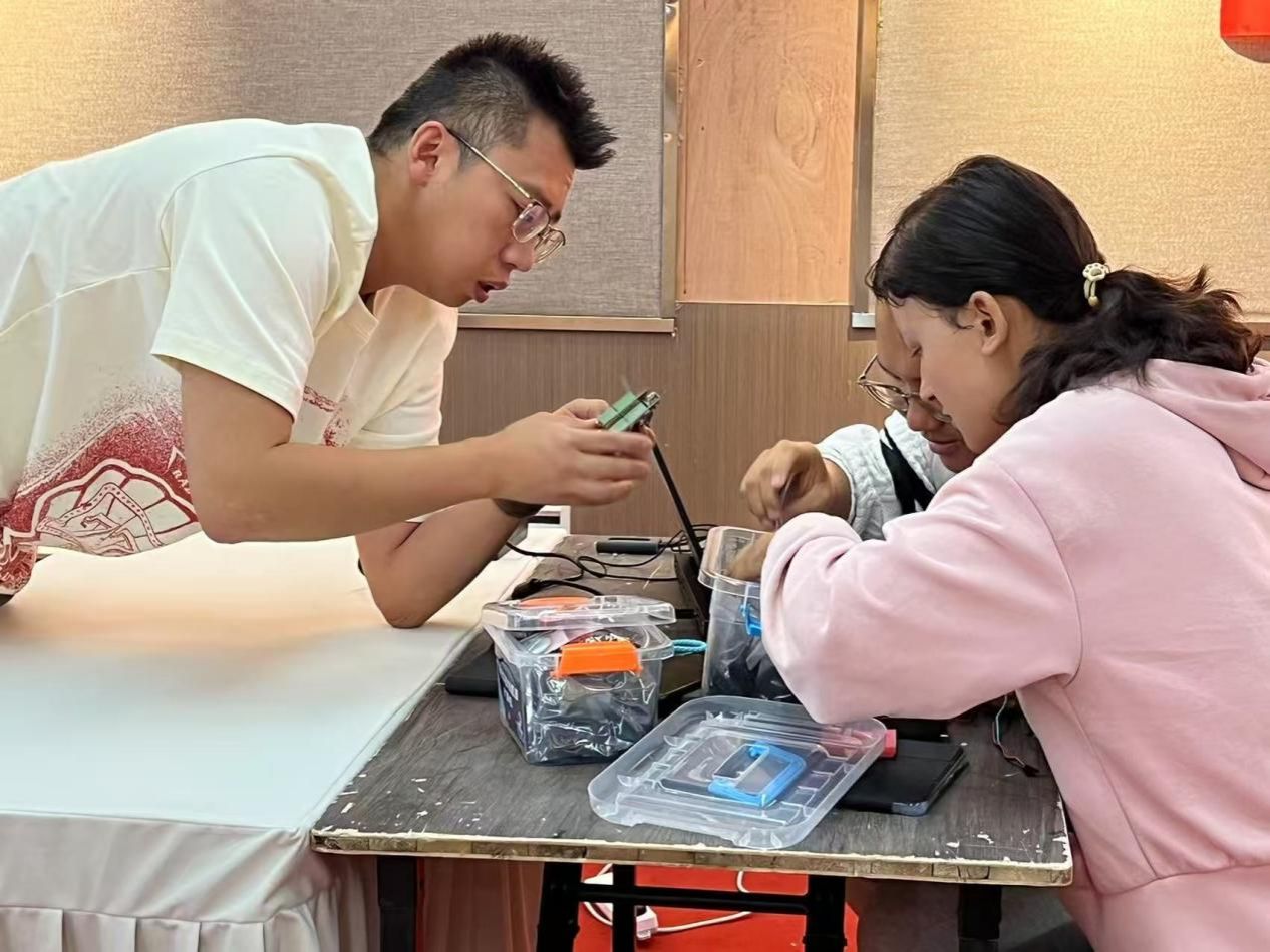 在为期两周的课程中,企业教师将通过Mind+编程软件,带领学生学习如何将人工智能技术融入科创作品开发,帮助学生快速实现智能硬件控制、数据分析和交互设计,进行智能作品的开发与实践,如智能感应门、智能开关灯等项目,通过代码调试、设备联调与场景测试,提升学生的实践能力与创新意识,展现人工智能作为“科创大脑”的潜力。