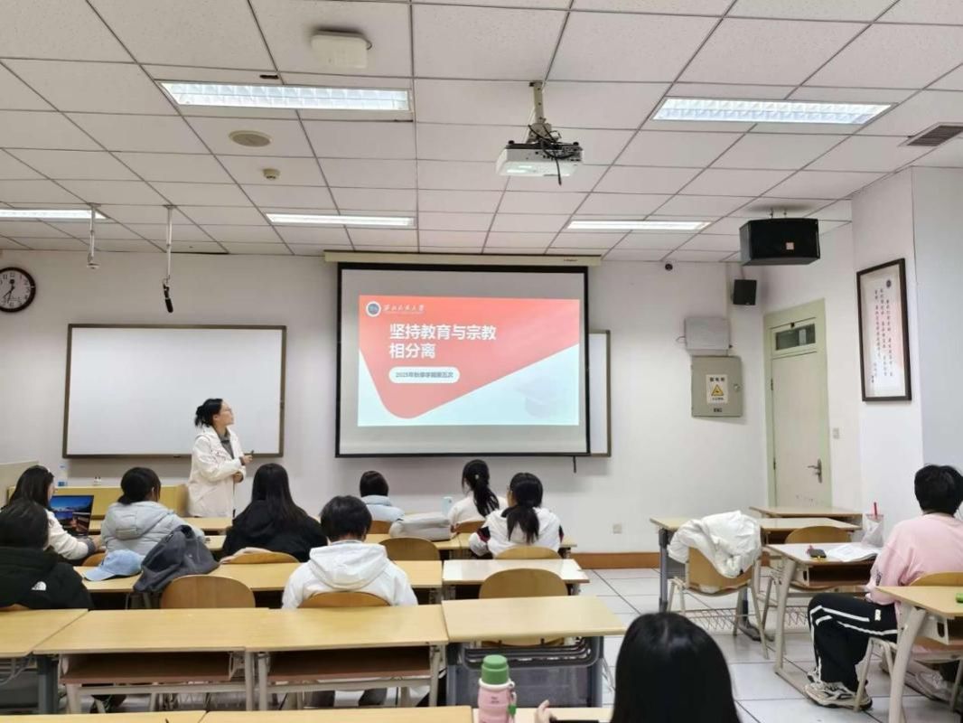 )组织各班级召开教育与宗教相分离主题班会,班会由各班班导师主持召开。