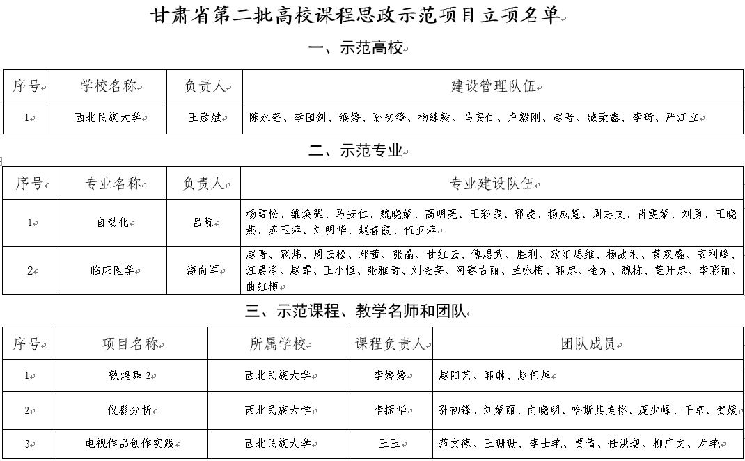 获批甘肃省第二批高校课程思政示范高校,自动化专业、临床医学专业获评课程思政示范专业,《敦煌舞2》《仪器分析》《电视作品创作实践》等3个项目获评课程思政示范课程、教学名师和团队。