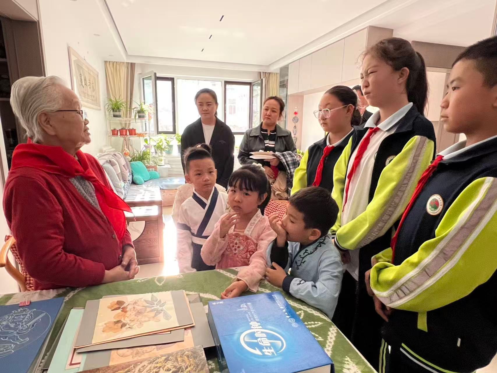 退休老教授老专家们给孩子们准备了丰富的水果和零食,并给孩子们讲述了科研往事、教学经历等珍贵的 “岁月故事”。现场氛围融洽而温馨。