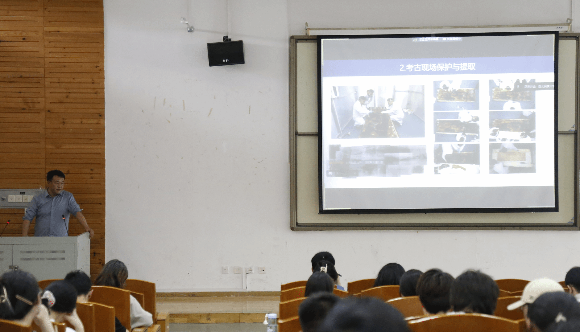 师生做了题为《武威吐谷浑王族墓葬出土丝织品文物保护》的讲座,本场报告由张少昀老师主持。