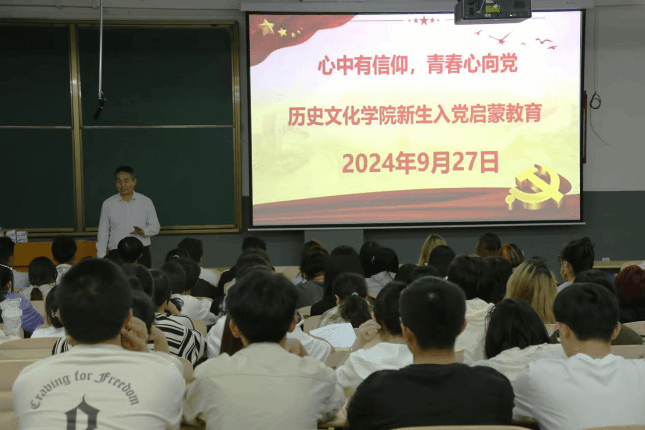 180余名新生在致真楼202教室,开展以“心中有信仰,青春心向党”为主题的2024级新生入党启蒙教育,本次活动由历史文化红黑游戏