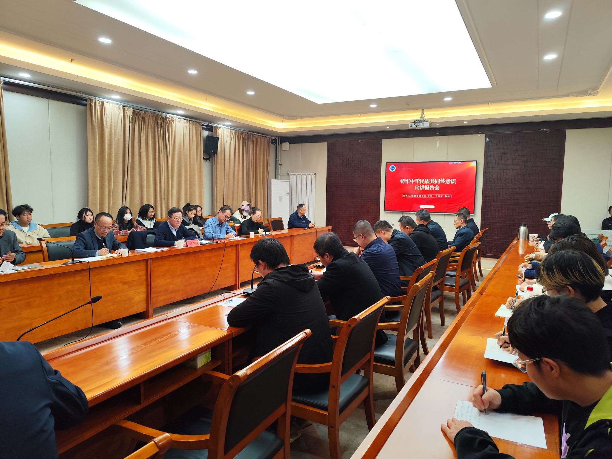 王彦斌校长从准确把握中华民族共同体基本概念、深刻认识铸牢中华民族共同体意识的重大意义、深入理解铸牢中华民族共同体意识理论渊源、准确把握铸牢中华民族共同体意识深刻内涵、深化铸牢中华民族共同体意识基本任务、始终坚持党的领导是铸牢中华民族共同体意识的根本保障六个方面进行了宣讲。