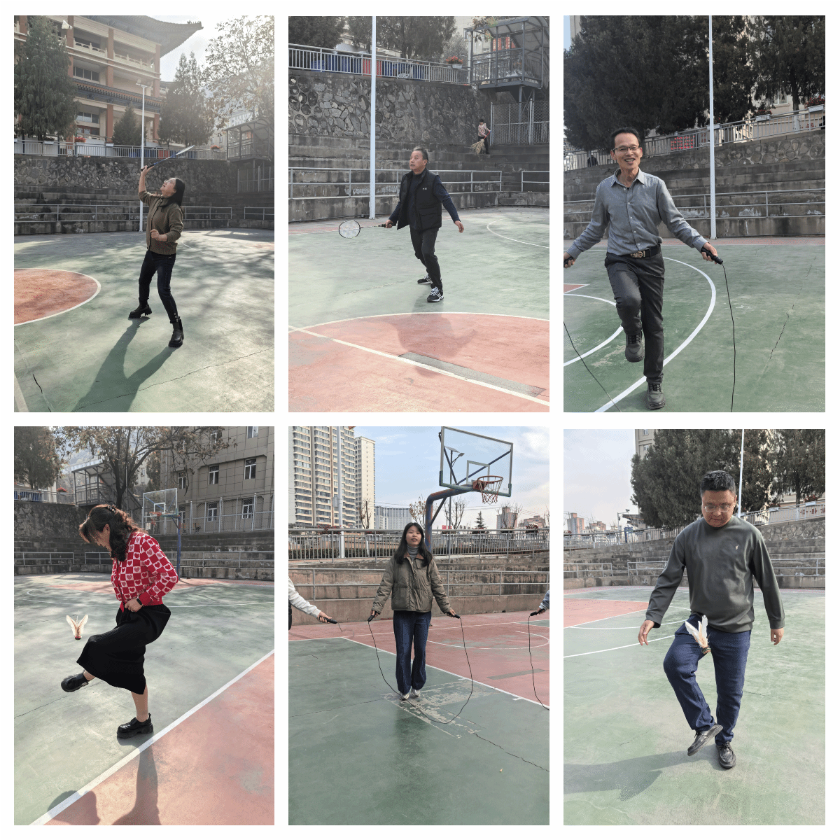 工会精心策划,设置了打羽毛球、踢毽子、跳绳等多项贴近生活、有益身心健康的体育项目,兼顾趣味性与参与性。赛场上,老师们相互配合、奋勇争先,羽毛球在空中划出优美弧线,彩色毽子在脚尖灵活跳跃,跳绳翻飞间尽显活力,欢声笑语回荡在校园的秋色之中。