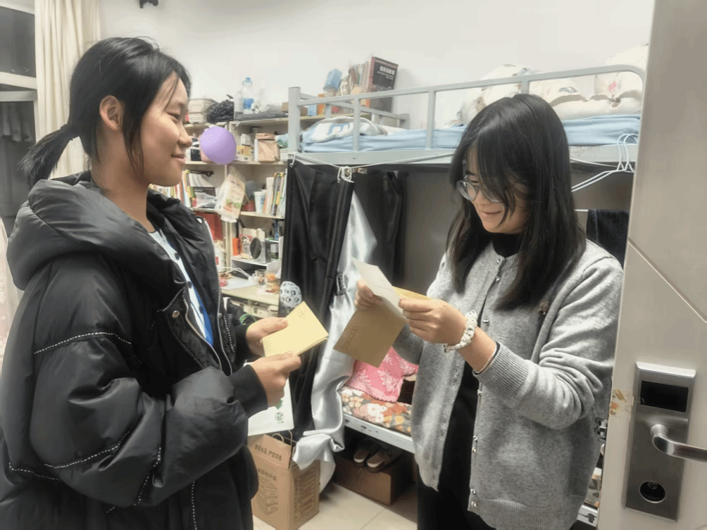 开展“学长学姐寄语”信件交换活动。这些信件由2024级学生提前撰写,内容涵盖大学学习生活适应、情绪调节方法及个人成长感悟等,旨在以同辈视角为新生提供心理引导。活动现场,学长学姐不仅逐一分发信件,还结合常见的入学适应问题,向新生普及心理健康知识,提醒大家关注自身心理状态。