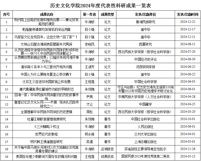 历史文化红黑游戏 2024年度科研成果一览表